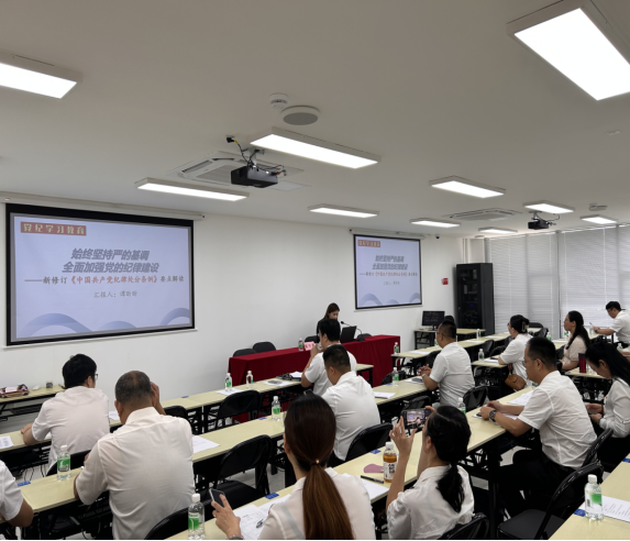 2024年7月9日,我公司黨員代表參加了由廣東省水利水電行業(yè)協(xié)會舉辦的黨紀(jì)學(xué)習(xí)教育主題黨日暨“七一”黨建活動。按照活動議程,上午觀看警示教育片,通過多個(gè)真實(shí)案例,讓參加活動的黨員代表感受到最直觀的視覺沖擊和思想洗禮。活動還邀請?jiān)龀菂^(qū)紀(jì)委監(jiān)察委審理室負(fù)責(zé)同志對《中國共產(chǎn)黨紀(jì)律處分條例》進(jìn)行解讀,結(jié)合真實(shí)事例從紀(jì)律處分的應(yīng)用規(guī)則、政治紀(jì)律、組織紀(jì)律、廉潔紀(jì)律、工作紀(jì)律等多個(gè)方面逐章逐條逐句詳細(xì)解析了《中國共產(chǎn)黨紀(jì)律處分條例》內(nèi)容。下午,黨員代表前往廣州農(nóng)民運(yùn)動講習(xí)所舊址參觀學(xué)習(xí),深入學(xué)習(xí)老一輩革命家堅(jiān)守初心和使命的精神風(fēng)范,切實(shí)做到學(xué)史明理、學(xué)史崇德、學(xué)史力行,引導(dǎo)全體黨員傳承紅色基因。
